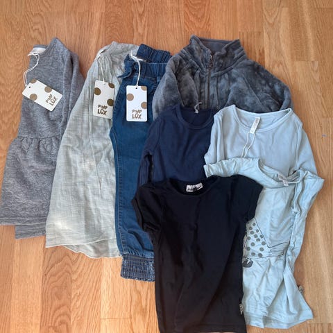 Stor klespakke til høy verdi selges billig. I str 98-104 fra PompDeLux. Inneholder mye forskjellig som en badedrakt uten synlige bruksmerker, kjoler, shortser og tskjorter. Klespakken kan ha noen bruksmerker men med prisen sin er det forventet.