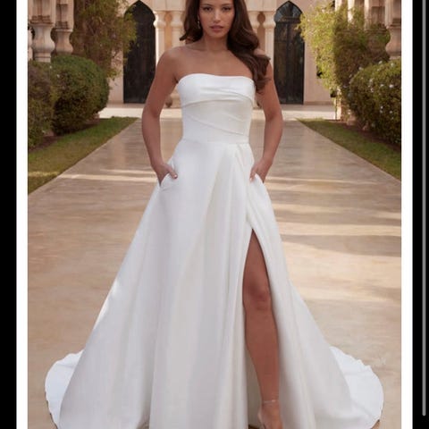 Selger en ubrukt brudekjolen med «detachable bow in the back»