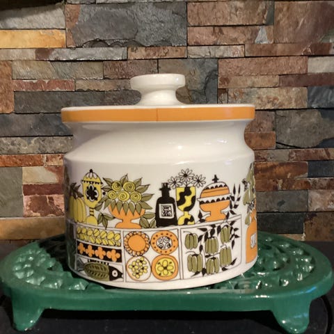 Krukken kan brukes til oppbevaring av matvarer som kjeks eller sukker, eller som en dekorativ gjenstand.