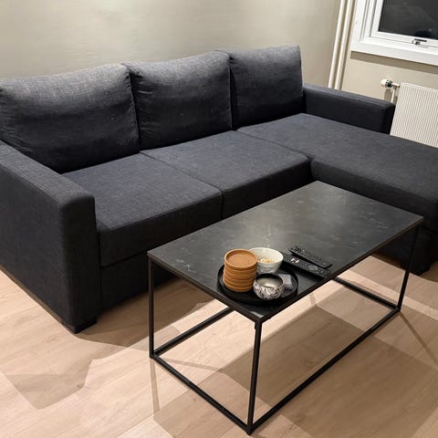 Sovesofa fungerer som både sitteplass og seng. Bredde 120 cm og 190 cm lende