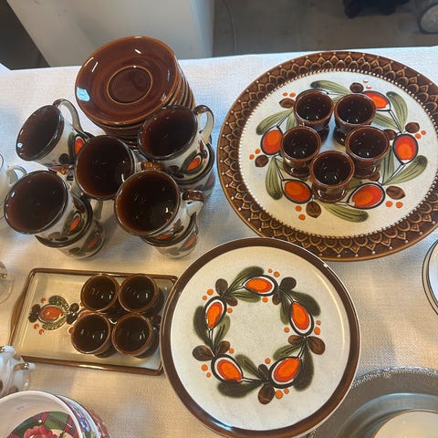 Deler selges 300kr. Eggeglass 150kr pr stk. har også 1 ekstra asjett/tallerken som selges for 200kr. Kan også selge alle deler samlet for 3000kr + porto