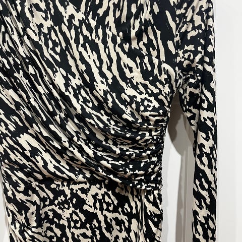 Elegant, figurnær ribbestrikket kjole som fremhever silhuetten med sofistikert utrignning og lange ermer .