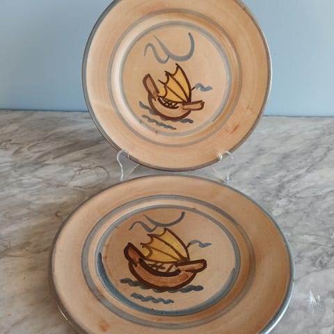 Pent lite fat fra Gude keramikk laget i 1952. Signert på undersiden. Et flott eksemplar av gammel, norsk keramikk. Diameter ca 16,5 cm. I pen stand; ingen hakk e.l.!