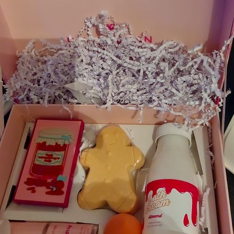 Surprise Beauty box vunnet på instagram. Alt er nytt og uåpnet. Perfekt gave til jente. Alt fra topmodel depesche. Inneholder foam maker, bath fizz, håndkrem, facemask, hair mask, blush stamp, eye pads, sponges, lipgloss, neglelakk. Total verdi i overkant av 750 kr.