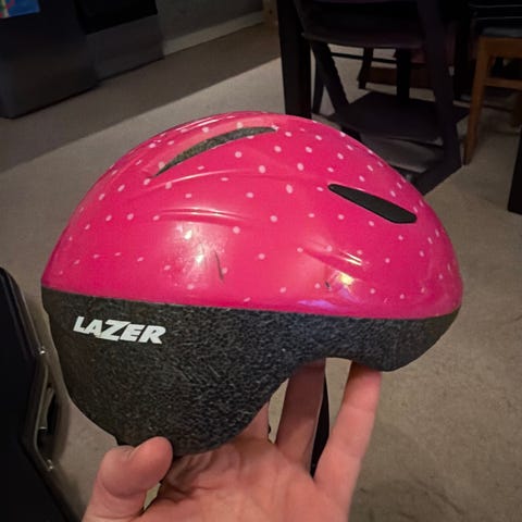 Hvit Rosa hjelm selges billig S/M