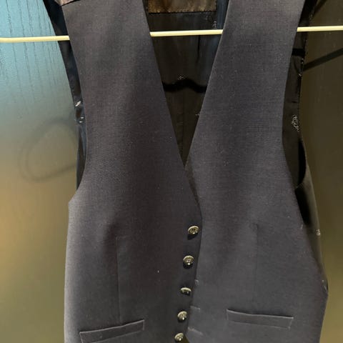 Veldig flott vintage Oscar Jacobsen dobbelspent sports coat i navy. 100 % ull, 100% viskose. Størrelse 52 og litt stor i størrelsen, måler ca 50cm i skulderne og 66 cm i ermet. Veldig tjukk og god kvalitet på stoffet, så det henger skikkelig fint uten å krølle seg. Kom gjerne innom for å prøve. Har flere ting til salgs som passer bra sammen, så be gjerne om en pakkepris.