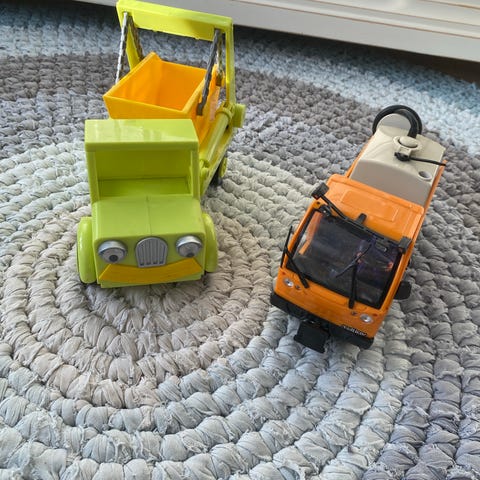 7 mellomstore biler: 100kr per stk. (Den gule ved siden av den oransje har dirrende øyne, typ hvis du ser en vei ser du at han ser mot høyre, venstre eller begge. Skal være sånn 😊)