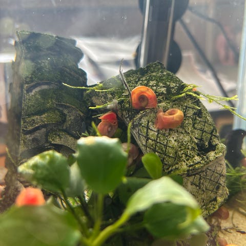 Naturlige og nyttige små hjelpere – posthornsnegler gjør en glimrende jobb med å holde akvariet rent og ryddig.
