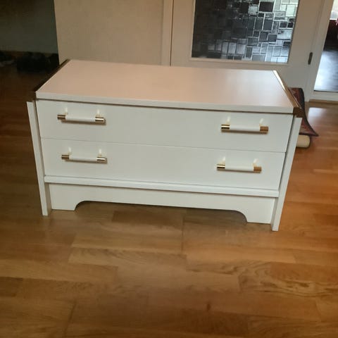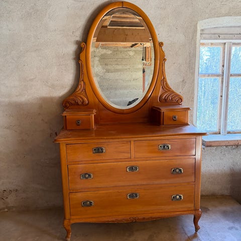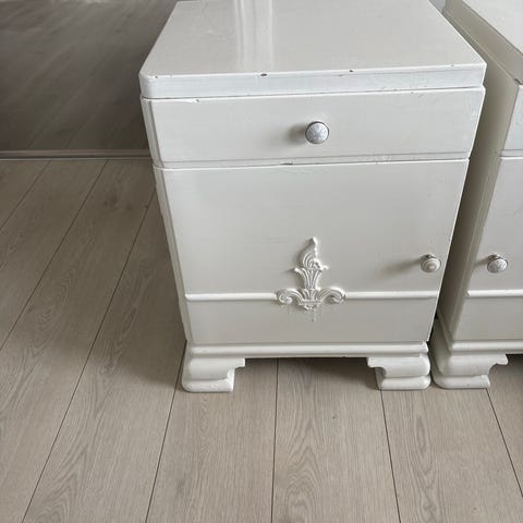 Håndsnekret møbel av eldre årgang: to skap, en skuffe og med tilhørende speil med roseutskjæring (bilde kommer). Speilet kan enkelt monteres på, men er gammelt og har en brist. Selges rimelig grunnet plassmangel.