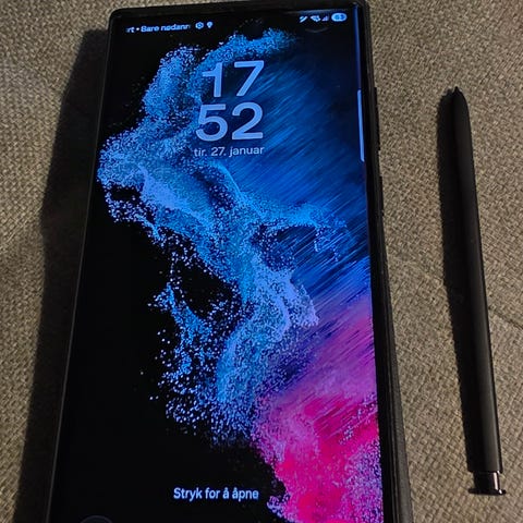 Selger en Samsung Galaxy S22 Ultra (512 GB / 12 GB RAM) i fargen Phantom Hvit. Mobilen fremstår som ny – uten skader eller bruksmerker.
