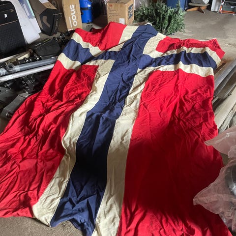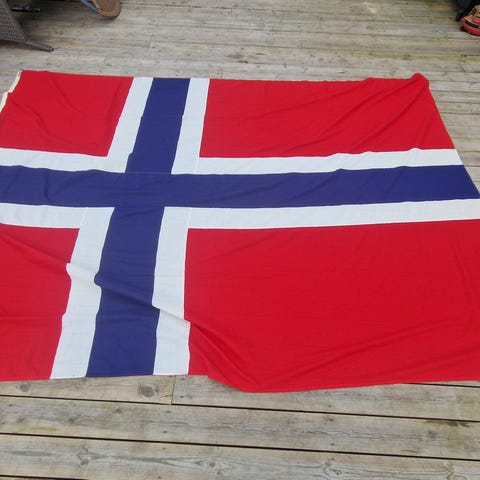 Stor norsk flagg – rød, blå og hvit stoffbanner ca. 2 meter