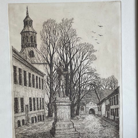 1. Prøvetrykk. Lysmål 13x15. Rammemål 26x29 cm. Kr.450.