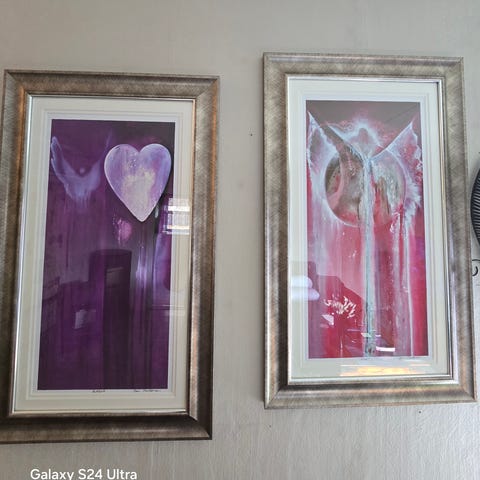 2. 27/50. Samme lysmål og rammemål. Begge med gullfarget ramme. Kr. 450.