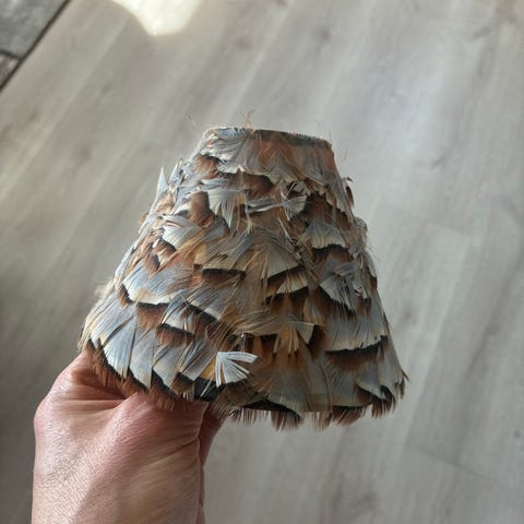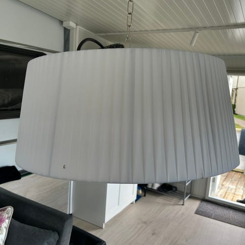 H 42- diameter oppe 31. to stykk gamle lampeskjermer, fine til å trekke om. Noen farge skader. 300kr for begge