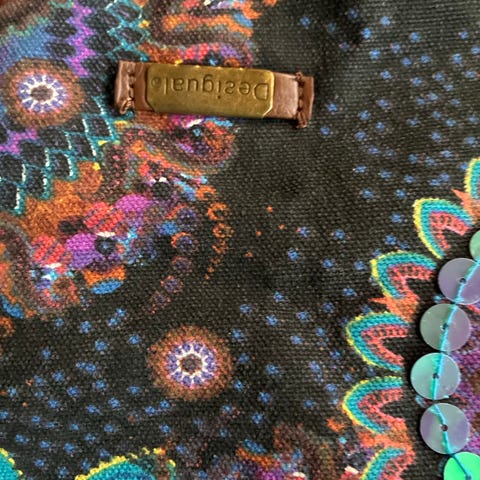 Blå veske fra Desigual, liten, men romslig, med mange rom. Kjøpt i Spania