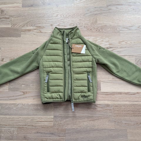 Ny, men tatt av lapper og satt på navnemerke, men ble ikke brukt og er nå for liten. Finn som vår/høstjakke eller mellomlag.