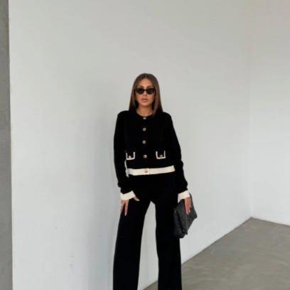 Stilig to-delt sett med en sofistisert outfit for kvinner, perfekt for vår, høst og vinter. Dette vintage-inspirerte plaid tweed.