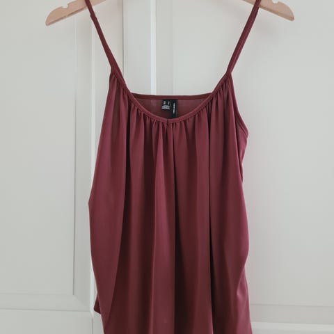 Helt ny sommertopp fra Vero Moda i str. S selges pga. opprydning. Toppen er i lett stoff, og har justerbare stropper og volanger. Nypris er 299 kr.