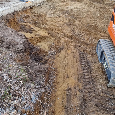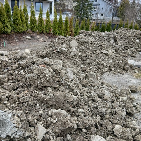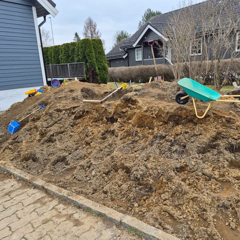 En haug med jord etter utgraving av garasje.