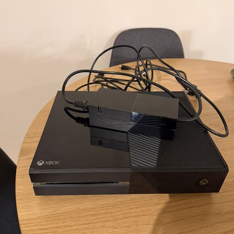 X-box one konsoll med tre trådløse kontroller, dokkingstasjon for to kontrollere.