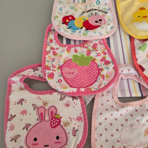 Nesten ikke brukt - seks fine biteringer i silikon i forskjellige blå/grå farger. Kan hektes sammen til ei lenke og også brukes til å henge opp leker (f.eks. i babygym).