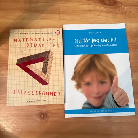 Matematikk for lærere 1 6. utgave 2018, Begynneropplæring matematikkdidaktikk barnetrinnet 2020. Tall og tanker 2 matematikkundervisning på 5-7 trinn 1. utgave 2019,