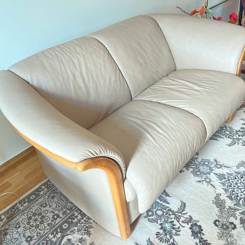 Ekornes sofa + stol og solid salongbord