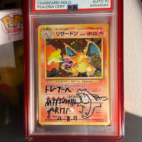 Pen 4'irer PSA, nylig gradert base set Charizard.