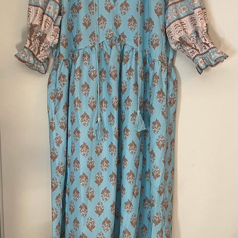 Se bilder for mål. (Bildene viser mål tatt av samme kjole i blå farge. Lik størrelse)