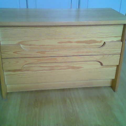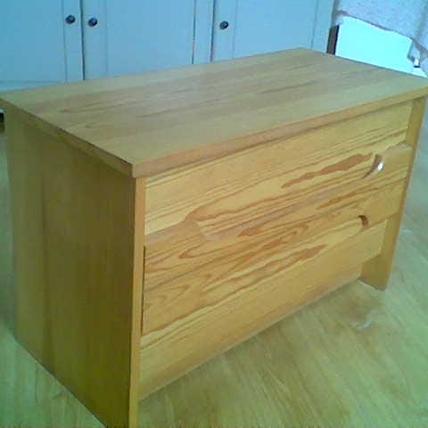 B 74 - D 35 - H 47 cm. Velholdt møbel uten skader. Kraftige skuffer med huntonittbunner.
