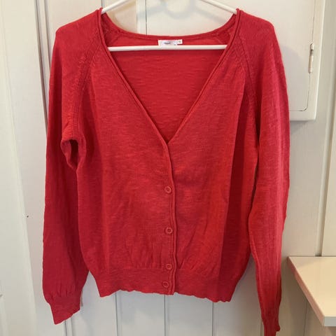 Svært pent brukt bolero fra Uno, rød/oransje farge. 100% bomull. Det er med en ekstraknapp.