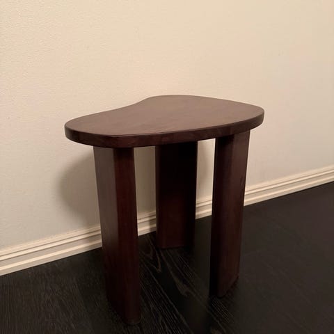 Selger en nydelig og solid krakk/sidebord i mangotre. Pent brukt.
