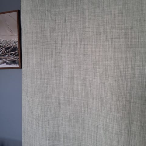 Selger 1 fag - 2 gardiner, lystette i farge lyse/mellomgrå.