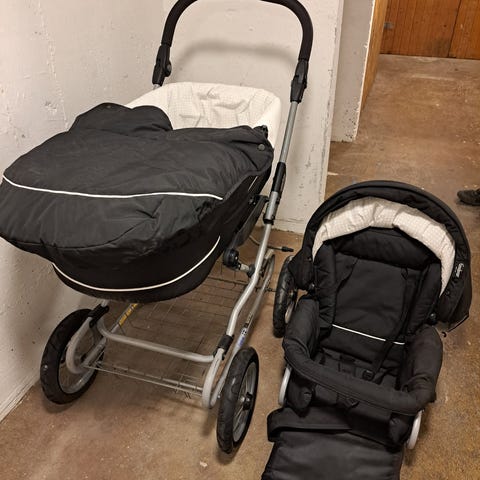Selger en emmaljunga barnevogn med baggdel og sete da vi ikke trenger den lenger, sete og baggen er i to forskjellige farger