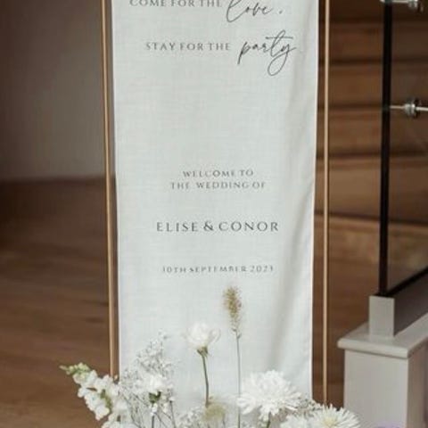 Skilt laget av MDF-plater. Malt med interiørmaling. Brukt en gang i bryllup.