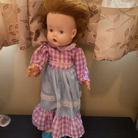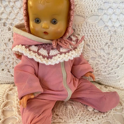 Veldig pen Analola dukke. Framstår uten feil, se bilder. Kommer i et hjemmelaget skjørt for anledningen. Disse ble gjerne solgt med et kort bomullsskjørt eller bastskjørt, blomsterkrans rundt halsen og i håret. Dette er altså ikke originalt, men laget av meg for å ligne litt på det originale.Har den originale armringen sin på! Ser på bildene at hun har litt glitter på seg, dette kommer av smykket/blomsterkransen. Dette er en liten skatt fra 50 tallet. Kjøpte den for 1 år siden for 3000 pluss porto. Da prøver jeg med enda en ny pris, 1350 kr medregnet porto!