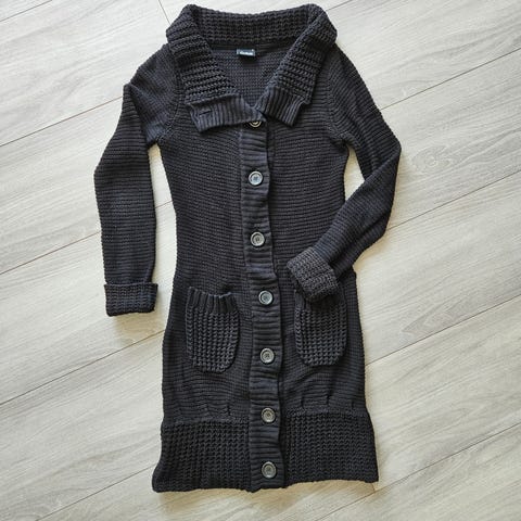 Grå åpen cardigan fra Cubus i str s. Pent brukt. Må hentes i Kristiansand eller sendes om kjøper betaler frakt.