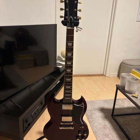 Det finnes noen små merker på gitaren. Se bilder. Selve treverket er uskadd.