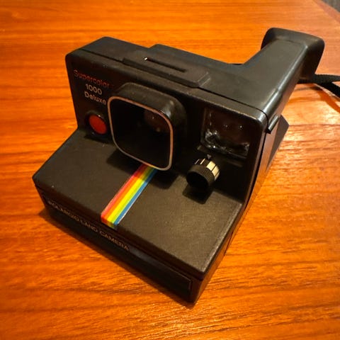 Selger et kult retro Polaroid Land Camera Supercolor 1000. Kameraet ser pent ut og virker komplett, men det følger ikke med film, så jeg har ikke fått testet om det fungerer.