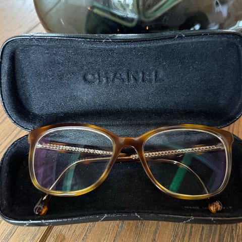 Selger Chanel briller med styrke. Kjøpt på Synsam. Fin innfatning som er tatt vare på. Glassene kan man selvfølgelig bytte til egen eller ingen styrke. Følger med pose og etui. Litt slitasje på etui. Pris kan diskuteres.