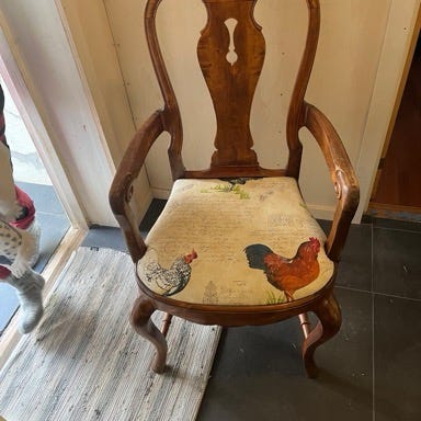 Gammel gyngestol, med en skade i ryggen, selges. Stolen skal visstnok være over 100 år gammel. Må hentes.