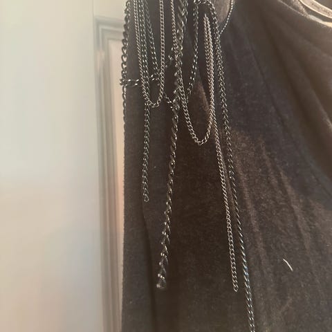 Til salgs er en helt ny linkjole, størrelse L, av designer Julia Jonus. En kjole med to lommer på brystet, gjennomsiktige ermer, to lommer på hoftene og et belte som kan knytes, eller du kan gå uten... Kjolene er veldig komfortable, lette, elegante, moteriktige, vakre, lange, med splitter på sidene.