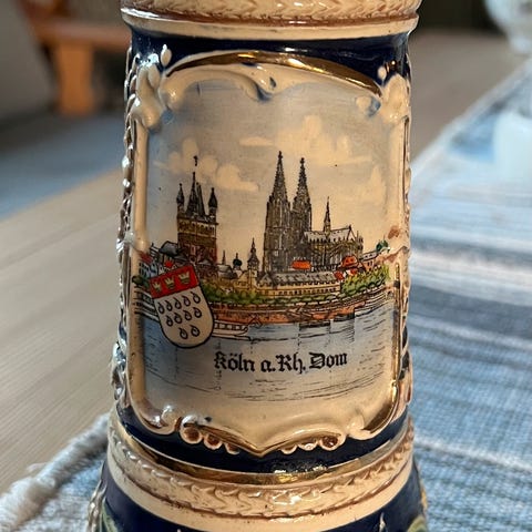 Søkeord: germany tysk ølbeger ølkopp øl-krus øl beger kopp krus stein steinkopp steinkrus vintage vtg samleobjekt.