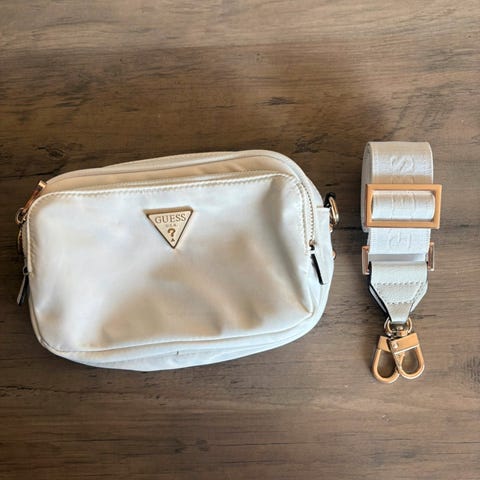 Selger min pent brukte reversible tote-veske fra Guess. Den har blitt pent brukt, med noe slitasje på kantene, men det er ikke noe som merkes veldig godt i bruk. Ellers er den i god stand. Ikke nøl med å ta kontakt for mer info! Jeg er villig til å diskutere pris☺️