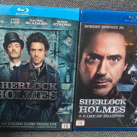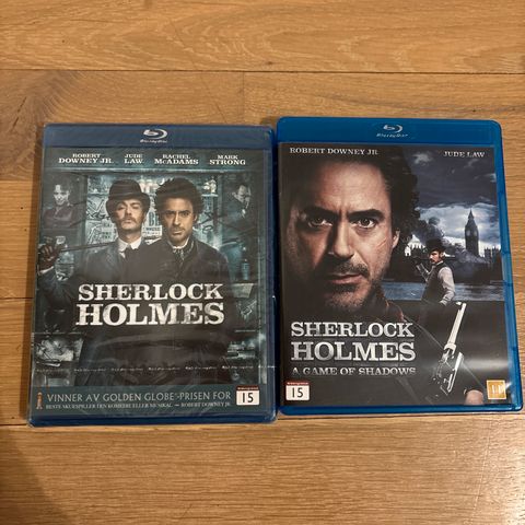 Sherlock Holmes Blu-ray Samling med to filmer. Inkluderer filmene 'Sherlock Holmes' og 'Sherlock Holmes: A Game of Shadows'. Formatet er Blu-ray, som gir høy bildekvalitet. Perfekt for fans av action og mysterium.