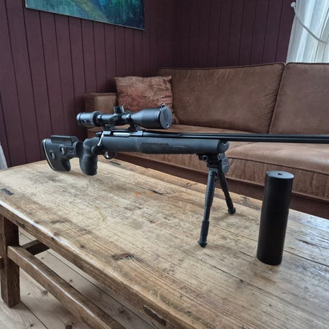 Fin tikka t3 ss 6,5x55 selges med Hausken demper og Picatinnyskinne selges uten kikkert