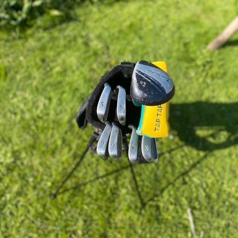 Golfsett med 3 golfkøller - 7-er jern, putter og driver.