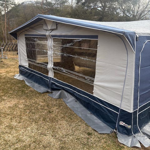 Helt og pent fortelt som har stått på Knaus Azur 495 (1998modell) usikker på årsmodell på fortelt. Karbonstenger. Har vært sydd og limt en plass (se bilder). Må hentes på Kile (Hægeland).