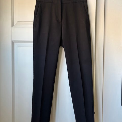Flott og klassisk ankelhøy bukse fra Morgan. Laget i Frankrike. Sort og i str. 38. (Passer fint til både str. S og M.) God stoffkvalitet som ikke skrukker. Fine detaljer som press, lite splitt i siden på hvert ben og pyntelomme med knapp bak.