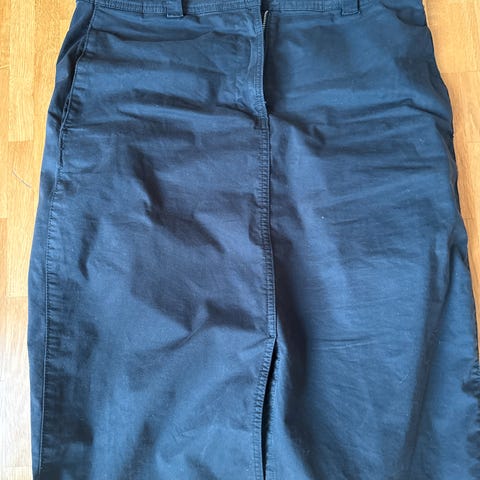 fin mørkeblå farge. (fargen er vanskeleg å fange på foto .. ) Bomull og litt strech = behageleg på!